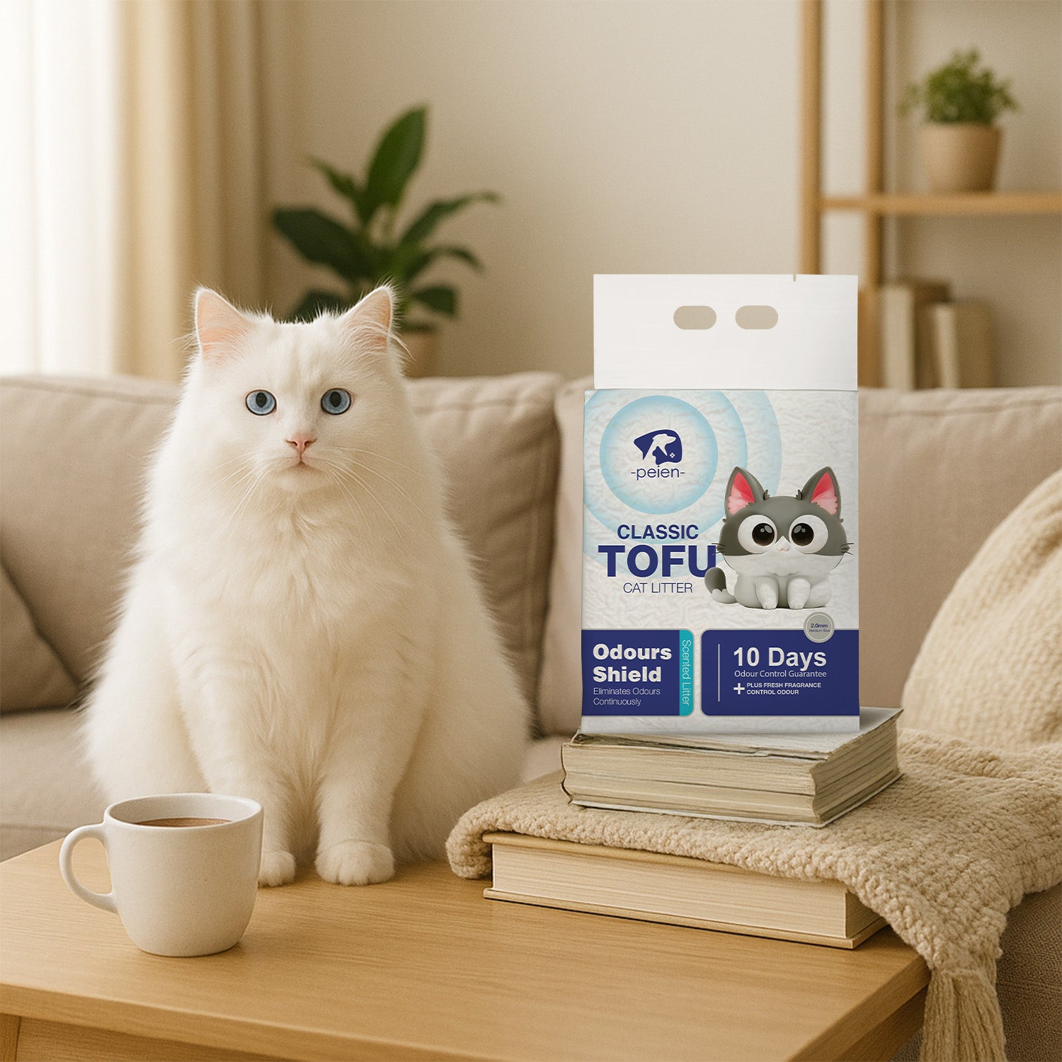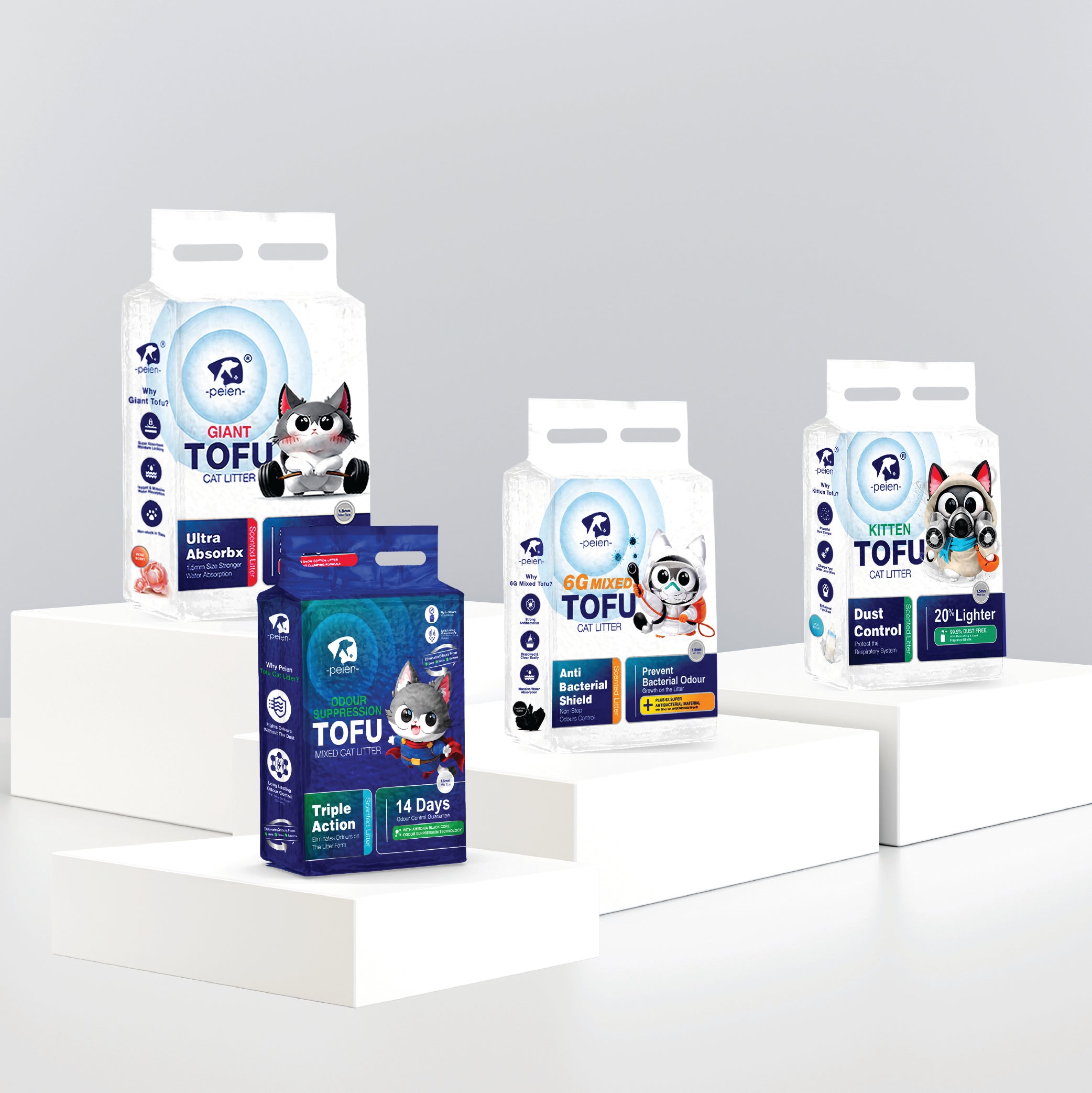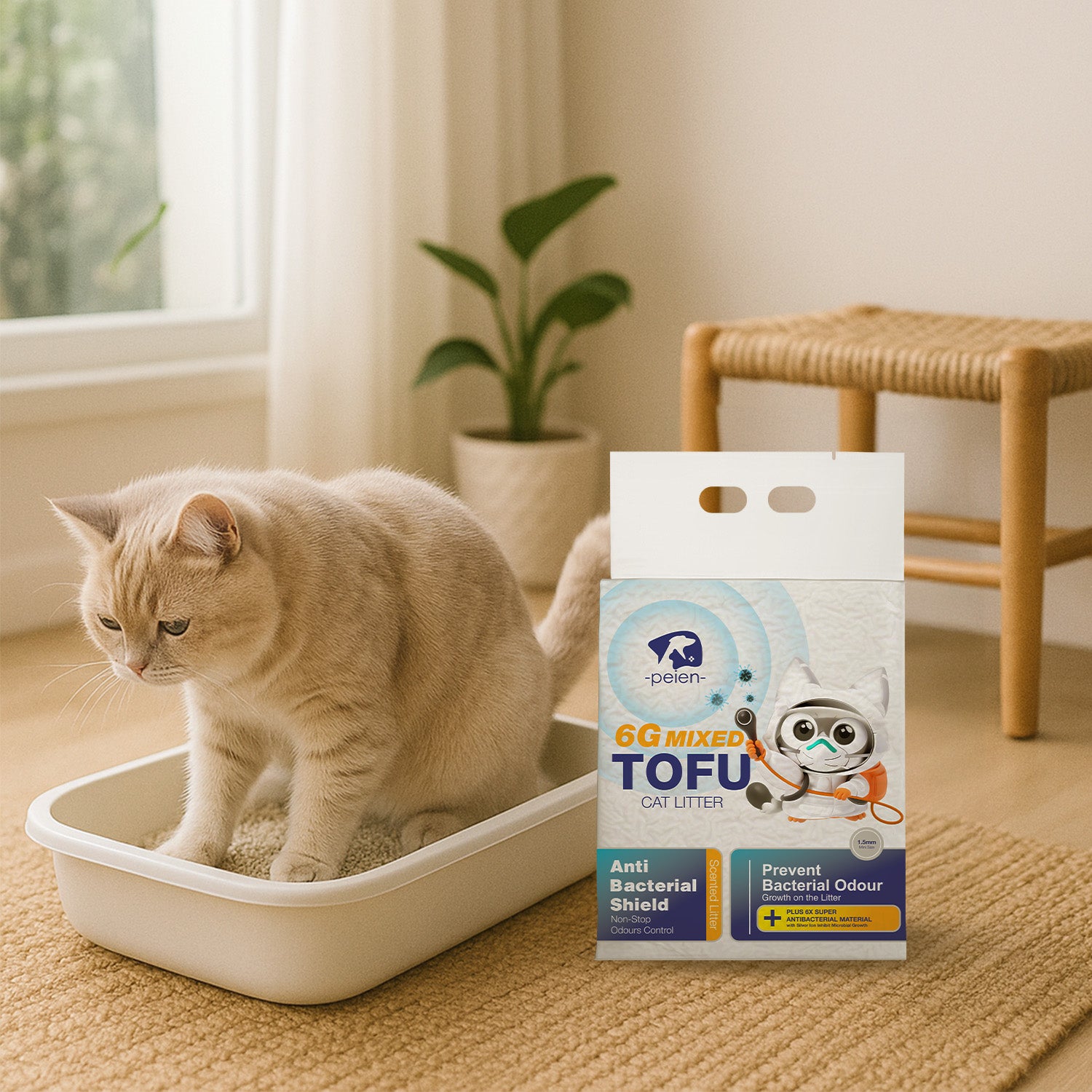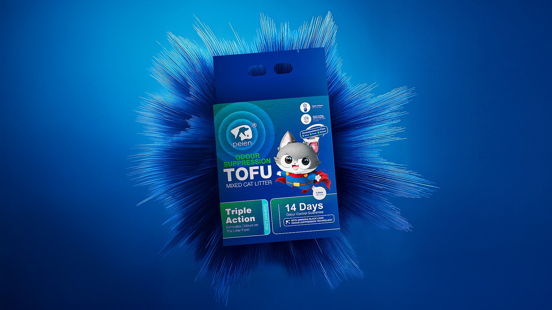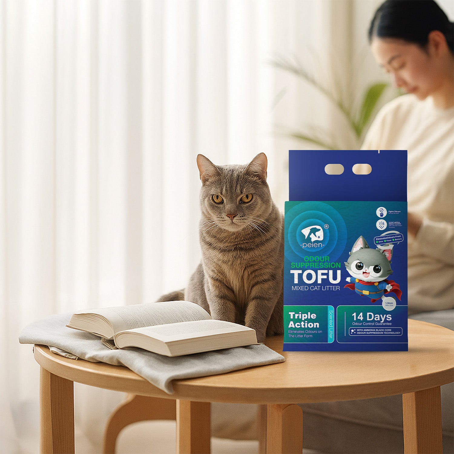A triple action long lasting tofu cat litter that mixed with ammonia black core odour suppression technology