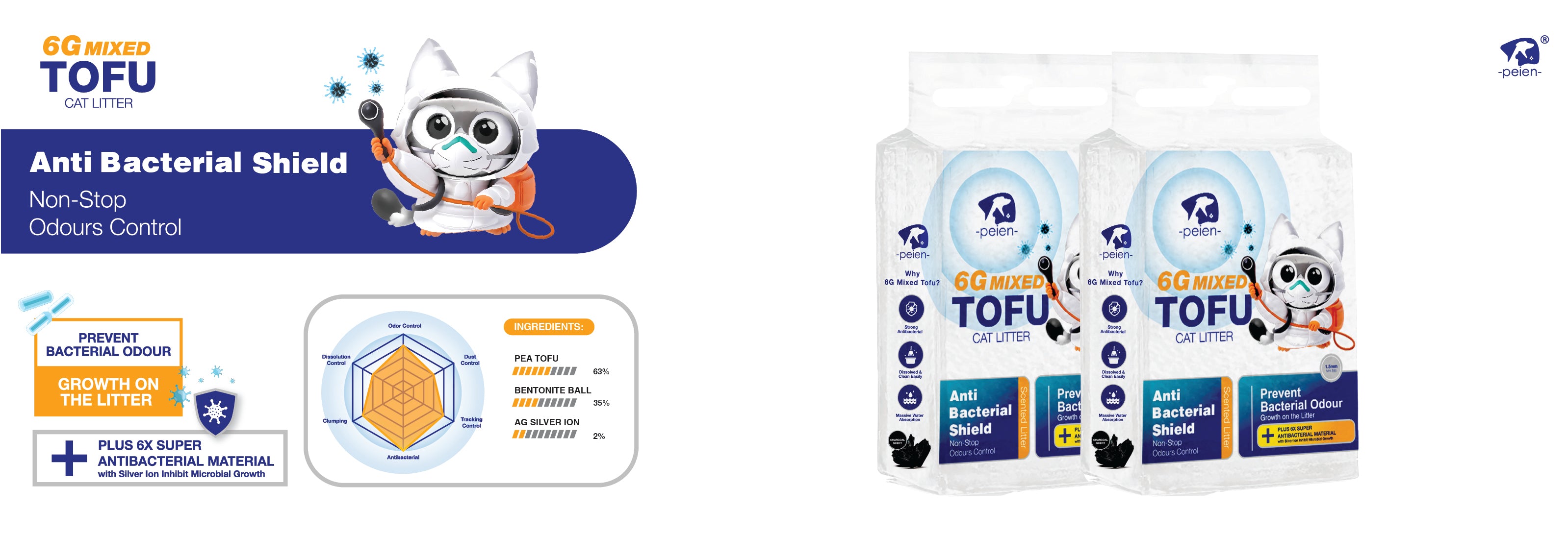 Antibacterial shield that prevent odour growth on the litter with a mixture of silver Ion which help non-stop odour control